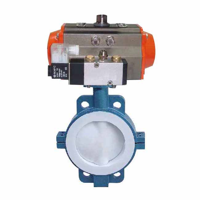 (襯氟)氣動蝶閥適用于濃硫酸、鹽酸、硝酸、氫氟酸、王水、各種有機酸、強酸、氧化性介質或高溫烯硫酸、高溫濃醋酸、酸堿交替及多種有機溶劑和其它強腐蝕性介質。